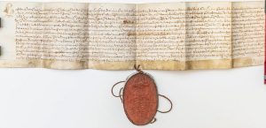 BULLE PAPALE en latin, avec un grand de cire rouge ovale dans sa boite en zinc (10 x 6,5 cm).