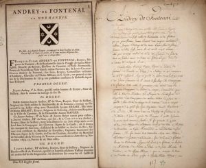 «François César ANDREY DE FONTENAI, écuyer, Seigneur de Fontenai & de Baudienville dans la Paroisse de SAINTE-MÉRE-ÉGLISE, Election de CARENTAN en Basse-Normandie...»
