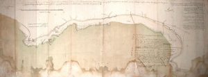 (MANCHE.) FORTIFICATIONS DE CHERBOURG. Plan manuscrit des Côtes de CHERBOURG, 1747. «Carte de l'anse Sainte Anne à l'ouest et à demie lieue de Cherbourg où sont représentés, les retranchements fait en 1747, qu'on propose de continuer en 1748. Ou l'on a marqué le Fort ordonné en 1737...»