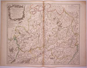 Carte de 1749: «Partie septentrionale du Comté de BOURGOGNE ou FRANCHE-COMTÉ, où se trouvent les Bailliages de Vesoul, Gray, Besançon, Baume, le Comté de Montbéliard, et partie des Bailliages de Dole, Quingey et Ornans, par le Sr Robert Géographe Ordinaire du Roi, 1749.» (51 x 66 cm) État B.