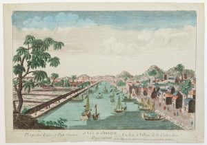 COCHINCHINE. «18e vue d'Optique représentant un lac et Village de Cochinchine» à Paris chez Daumont rue St Martin.