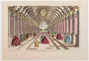 DANEMARK. «Vue perspective de la Galerie royale de COPENHAGUE conduisant au jardin.» Vue d'Optique XVIIIe (30 x 43) - Etat B. petite déchirure marginale. Coloris ancien.