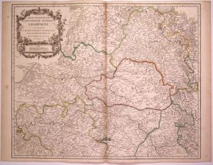 Carte: «Partie Septentrionale du Gouvernement général de CHAMPAGNE, où se trouvent le Retelois, le Rhemois, la Champagne propre, partie de la Brie et du Perthois, &. par le Sr Robert Géographe Ordinaire du Roi, 1752.» (51 x 66 cm) État B.