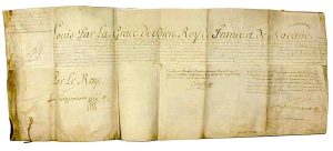 «Provisions de l'Office de GOUVERNEUR et Lieutenant-Général au pays D'ANJOU en faveur de Charles-Eugène de LORRAINE, Prince de LAMBESC” - Grand Parchemin (73 X 45) donné à VERSAILLES le 1er Août 1761 - Pièce signée LOUIS XV (Secrétaire) Contresignée PHELYPEAUX - “la satisfaction particulière que nous avons des grands et importants Services que ses ancêtres nous ont rendus dans toutes les occasions..., persuadés que notre dit Cousin le Prince de LAMBESC marchera sur leurs traces, et nous donnera comme eux des preuves de son zèle, de sa valeur, et de sa fidélité à notre Service...”