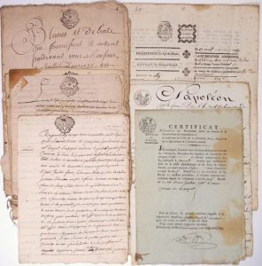 PUY-DE-DÔME. AUVERGNE. District de CLERMONT-FERRAND. 9 Documents timbrés ou liasses 1762-1809; in-4° ou in-folio.