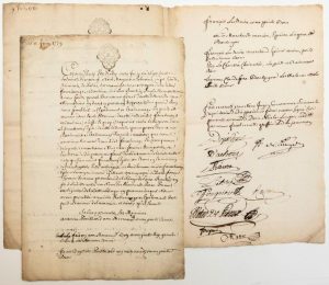 VERMANDOIS. AISNE. ABBAYE DE ST QUENTIN. 3 pièces signées, collectivement,; ST-QUENTIN (02) , 15 juin 1764, 17 Juin 1779 et 9 Juin 1780. Papiers timbrés totalisant 10 pages in-folio.