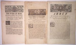 + Lettres-patentes sur arrêt du conseil, servant de règlement pour la répartition du SEL d'ordinaire en Franche-Comté.» du 14 mai 1775. De l'imprimerie de CL. Jos. DACLIN. 8pp grand folio.