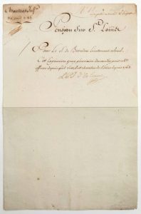 PHILIPPE ÉGALITÉ (Louis Philippe Joseph de BOURBON, Duc d'ORLÉANS, dit) Saint Cloud 1747 - Guillotiné 1793 - Duc d'Orléans en 1785, Prince de Sang, Conventionnel de PARIS, sous le nom de PHILIPPE ÉGALITÉ, il vota la mort de Louis XVI (1793). Il fut le Père de Louis-Philippe - RÉGIMENT DE “CHARTRES INFANTERIE” 30 Août 1785 - Pension sur SAINT LOUIS pour le Sr de BOSREDON Lieutenant-colonel. “C'est la première grâce pécuniaire demandée pour cet officier depuis qu'il sert. Il est Chevalier de ST LOUIS depuis 1763” - Pièce signée “L.P.J. d'ORLÉANS” - 1/2p in-folio (à partir de 1782, Il porte le Titre de Duc de CHARTRES, et à le grade de Colonel-Général)