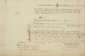 RHONE. VAUCLUSE. 1785. DOUANE «VERRERIE ROYALE DE GIVORS (69), le 26 Avril 1785 - Lettre de voiture avec les Droits sur les Douanes de Douze cents bouteilles pour Mr TERRASSE notaire royal et Agent de la Terre de ROCHEGUDE, au Château de ROCHEGUDE près d'ORANGE (84). Texte en-tête: «Décision du Conseil, du 7 Mai 1784, qui réduit à 2% de la valeur, la perception de tous les Droits de Traites & de Péages, appartenants au Roi, sur les Marchandises destinées pour l'Étranger; en outre, une modération de Droits sur les Douanes de Lyon, celle de Valence, et sur les Foraines et les péages royaux» - 1 Page imprimée remplie à l'encre (24 x 37).