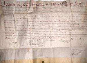 LOT. HAUTE-GARONNE. 1785. Licence de Théologie de l'Université de TOULOUSE pour M. BESSONIES Prêtre de FIGEAC, Diocèse de CAHORS (Cadurcien). Brevet sur parchemin (44 x 61), calligraphié. Pièce signée et à l'en-tête de Jean Baptiste Auguste de VILLAUTRAYS DE FAYE (ou VILLOUTREIX DE LA FAYE) chancelier, Vicaire général de l'Archevêque de TOULOUSE. Fait à TOULOUSE (Tolose) le 6 Août 1778. Contrôlé à MOISSAC le 14 Avril 1785. Insinué au Diocèse de CAHORS (46) le 18 May 1785. Texte en latin.