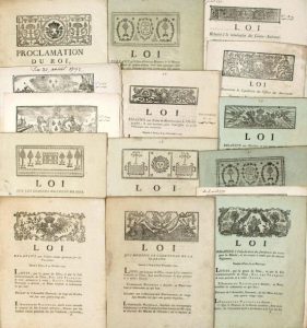 Proclamation du Roi (Louis XVI), sur un Décret de l'Assemblée Nationale, relatif aux demandes que les Municipalités, pourraient faire des armes destinées pour l'armement des Vaisseaux. Du 20 Août 1790 + Proclamation du Roi (Louis XVI), du 21 Septembre 1790... sur les actes d'insubordination commis à bord de deux vaisseaux de l'escadre de Brest, depuis l'arrivée du Léopard. + Loi relative aux Soldats tenant garnison sur les Vaisseaux. Du 31 Octobre 1790 + Loi qui modifie le Code pénal de la marine. 2 Nov. 1790 + Loi concernant la liquidation des Offices des Amirautés. 10 Nov. 1790 + Loi relative aux dépenses du Département de la Marine & des Colonies, pour l'année 1791. + Loi sur les classes des Gens de mer. 7 Janvier 1791. + Loi portant qu'il sera délivré au Ministre de la Marine une somme de 4 millions 347878 Livres, le tout provisoirement, et à la charge par lui d'en rendre compte. Du 21 Janvier 1791 + Loi relative à la Décoration militaire pour les Officiers attachés à la Marine. Du 1 Février 1791. + Loi relative à la solde des Gens de mer, employés sur les vaisseaux de l'État & au service des Ports. 11 février 1791. + Loi relative aux indemnités accordées aux Commandants des Bâtiments de l'État, lorsqu'ils passeront à leur bord des personnes en vertu d'ordres du Roi.» du 11 février 1791 + Loi relative aux matelots et autres agents de mer qui, au désarmement des vaisseaux de l'État, voyageront pour retourner dans leur quartiers. Du 11 Fév.1791 + Loi relative aux erreurs qui se trouvent dans le Décret du 21 Septembre dernier, concernant l'administration de la marine. + Loi relative à l'adjudication des fournitures des vivres pour la Marine, et au compte à rendre par les anciens Régisseurs. Du 20 mars 1791 + Loi relative aux Écoles de Mathématiques & d'Hydrographie, & aux examens pour l'admission au grade d'Enseigne non entretenu. Du 25 nov. 1791 + Loi relative à la nomination des Contre-Amiraux. 27 Juin 1792 + Loi du 15 août 1792 (sur le rapport de son comité de Marine.) + Loi relative à l'approvisionnement des différents Ports de l'État.