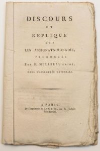 MIRABEAU MIRABEAU. ASSIGNATS-MONNAIE. Sept 1790. «DISCOURS et réplique sur les Assignats-Monnaie, …