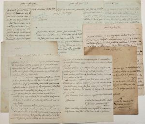 Paris 12 novembre 1790 /Au sujet d'une affaire privée «...Comme il n'y a point encore en circulation d'assignats au-dessous de 200 #, il est donc bien tenu de payer en espèces...» «...La vente des biens nationaux commence à marcher en différents départements: ici tous les jours il se vend plusieurs maisons...» Paris 26 novembre 1790 «...L'Assemblée nationale décréta mercredi qu'il ne serait rien changé actuellement dans la distribution des districts et que les législatures à venir seraient droit sur les demandes que pourraient faire les peuples" "Il me parait, Monsieur, que vous seriez dans l'intention d'acheter des biens nationaux si nous traitions ensemble des fonds dont vous pourriez avoir besoin... Paris 18 décembre 1790 "Les biens nationaux se vendent parfaitement en beaucoup de départements et il y en a ici pour plus de quatre millions de vendus. On vient de vendre à Angers 14 maisons 330000 #...» Paris 7 janvier 1791 «....Il vient d'apprendre que le château d'Yvré et quelques dépendances [Sarthe] viennent d'être adjugés à Monsieur de Valence pour 140000 #...» «Demain on brulera 1500000 # d'assignats rentrés en paiement de biens nationaux: ils se vendent presque partout avec empressement." "Nous n'avons que deux évêques à l'Assemblée qui aient prêté le serment décrété sur la Constitution civile du Clergé: tous les autres l'ont refusé, ils ont entrainé une vingtaine de curés dans leur parti... Il n'y a encore que 5 à 6 évêques qui aient prêté leur serment: ils ont bien de la peine à se détacher des biens de ce monde» Paris 12 avril 1791 «...La Constitution est bientôt entièrement finie quoiqu'en disent les ennemis de la patrie. Elle n'est ni n'a été en danger. Il paraît certain qu'au commencement du mois prochain on convoquera pour la nomination de ceux qui devront nous remplacer au mois de juillet suivant [Future Convention Nationale]. Tout est extrêmement tranquille ici si on excepte quelques fessés de dévotes qui ont été fouettées pour avoir voulu soutenir le fanatisme de leurs curés réfractaires à la loi. Le commerce reprend partout avec une activité étonnante....» (Extraits)