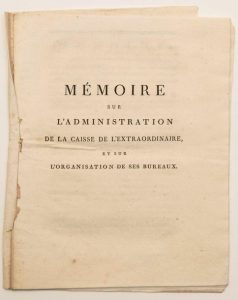 FINANCE FINANCE. 1790. DIDOT: «Mémoire sur l'Administration de la Caisse extraordinaire et sur …