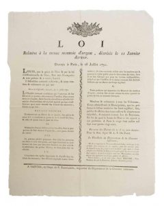 MONNAIE. 1791. CHARENTE MARITIME «LOI relative à LA MENUE MONNAIE D'ARGENT, décrétée le 11 janvier dernier.» - Donnée à Paris le 28 Juillet 1791 - Vignette royale - Publié par le directoire du département de la Charente Inférieure. Saintes le 23 août 1791 - Impr. à SAINTES, chez P. Toussaints, imprimeur du Département de la Charente Inférieure.