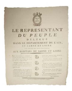 BOISSET (Joseph Antoine, Conventionnel de LA DRÔME) «Le Représentant du Peuple délégué dans le Département de l'AIN, et SAÔNE ET LOIRE, par Décret du 9 Fructidor (An 2: 26 Août 1794), aux Habitants de SAÔNE ET LOIRE.