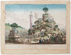 RÉVOLUTION. FÊTE DE L'ÊTRE SUPRÊME. Vers 1794. «Vue de la Montagne élevée au champ de la Réunion pour la fête qui a été célébrée en l'honneur de l'Être Suprême le décadi 20 Prairial de l'An 2 de la République Française.»