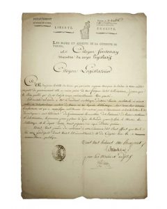 Ensemble de 16 Lettres et Pièces à lui adressées en tant que Citoyen de FONTENAY Législateur, Représentant du Peuple ou membre du Conseil des Anciens, du 27 Ventôse an 4 (17 mars 1796) au 30 Nivôse An 12 (21 Janv. 1804):