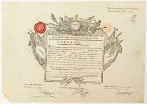 GRENADIER. MEURTHE-ET-MOSELLE. Congé absolu fait à NANCY (54) 14 Floréal an 6 (3 Mai 1798), en faveur du citoyen René COQUELET Grenadier, natif de l'Ille-et-Vilaine, blessé par balle. Il a fait les Campagnes de la Révolution de l'an 1 à l'An 5. Pièce signée du Général de Division Joseph GILOT et des Officiers de la 106ème Demi-Brigade d'Infanterie de Ligne.