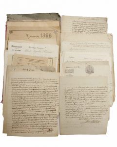 Divers manuscrits autographes: «Opinion de Mr M. J. BAUDET-LAFARGE (du Puy-de-Dôme) sur le projet de résolution concernant les ascendants d'Émigrés et les droits de successibilité de la République, présenté le 6 Pluviôse an 7.»; «Sur les chemins de MARINGUES.», «Observations sur l'ouvrage de Mr de MONTLOSIER, intitulé de la Monarchie française.»; «sur les vaches laitières en Angleterre..»; sur «les chemins vicinaux, loi du 28 Juillet 1824» (d'une autre main), divers notes «sur la société Impériale zoologique d'acclimatation», sur les incestes; sur les variétés de pommes de terre et autres, Cahiers de comptes de «Marais» et un ensemble Lettres et Documents concernant son fils - Un registre journal de dépenses de l'année 1829 de Mr COLIN (Marié à Mademoiselle BAUDET-LAFARGE) , 3 actes notariés dont un Bail de chasse avec le marquis César de MONTGON. 1896.