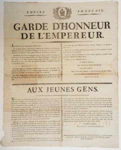 EMPIRE. 1805. GARDE D'HONNEUR DE L'EMPEREUR NAPOLÉON. CALVADOS. Arrêté de Charles CAFFARELLI Préfet du CALVADOS qui invite les jeunes gens de son département à se réunir «pour offrir à Sa Majesté Impériale leurs services, comme Gardes d'Honneur, et demander la permission d'envoyer un détachement auprès de Sa personne...» «Jeunes gens, Ne brûlez-vous pas de vous associer à ses triomphes ?» donné à CAEN le 10 Vendémiaire An 14 (2 Octobre 1805)