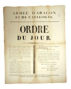 «ARMÉE D'ARAGON ET DE CATALOGNE» Ordre du jour. Au Quartier général de NARBONNE (11) le 1er Mai 1814.