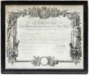 Brevet (40 x 50 cm) encadré sous verre.