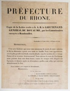 LES TROIS GLORIEUSES. DÉPART DES BOURBONS. 1830. RHÔNE.
