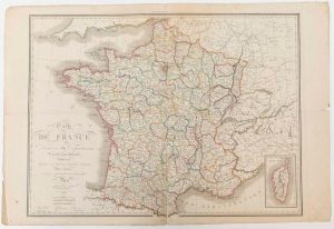 CARTE DE FRANCE divisé en 86 Départements et 19 divisions militaires, comprenant préfectures, sous préfectures, chefs lieux de cantons, Routes des Postes, dressée par LAURAIN Fils Géographe, Paris 1831.