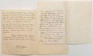 L'ART DE LA GRAVURE: 2 Lettres adressées au Baron Auguste DESNOYERS Peintre et premier Graveur du Roi. Une du Comte Henri de TURENNE, Pair de France, afin qu'il l'aide à trouver un conseil pour un jeune souhaitant apprendre «le Bel Art de la Gravure», Paris 31 Oct. 1838. L'autre de Charles Albert, Duc de LUYNES, Lettre A.S. Paris 23 Mai 1853. Il le remercie pour l'envoi de l'ouvrage de Quincy, dans lequel il ajoute «tant de choses précieuses».