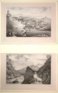 PYRÉNÉES-ATLANTIQUES. 3 Lithographies par VIDAL de l'imprimerie Bertrand MAURIN à Bayonne. (vers 1850) «BIARRITZ. Port-Vieux et Nouvel Établissement de Bains chauds.» (28 x 36) + «BIARRITZ. La Roche Percée.» (28 x 36) + «Le Pas de ROLLAND (près Cambo).» (28 x 36)