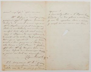 Ayez l'obligeance de vous informer de la vente et de retirer de la rue de la Michaudière tout ce qui m'appartient. Je serais mercredi à Paris pouvez-vous m'attendre à votre bureau à midi et demi ? Faites un effort Mr le Duc pour tirer moi et mes enfants du mauvais pas et comptez jamais sur toute ma reconnaissance... Si vous voulez aller à l'Opéra Comique Vendredi j'ai des places à vous donner, je vous les apporterai. Adieu à Mardi, je compte sur vous comme sur Dieu !»