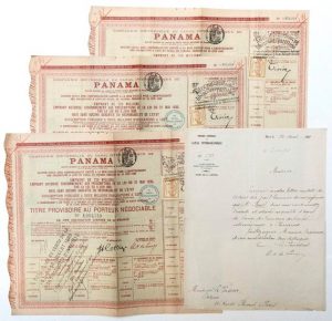 + 3 Actions de la «Compagnie universelle du Canal interocéanique de PANAMA». Ferdinand de Lesseps Président-Directeur.