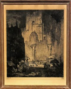 Steen", signé et daté 1913 par l'artiste en bas à dr. (planche uniformément brunie). Sous vitre et cadre de bois brun clair. État définitif de la planche signalée sous le n° 37. Épreuve non justifiée, conformément au "tirage non numéroté" annoncé par Le Roy.