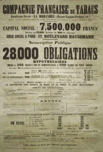 1870 «COMPAGNIE FRANÇAISE DE TABACS. Manufacture Royale «LA HORANDEZ» (Havane-Espagne-Portugal, etc.) Société Anonyme Française - Siège Social 17 boulevard Haussmann -