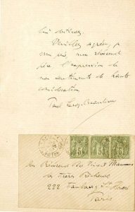 “Mon Révérend Père, J'ai reçu l'ouvrage que vous m'avez fait l'honneur de m'envoyer sur “L'Église et la Démocratie”. Je n'ai pu encore que le parcourir; J'ai été très frappé de sa belle ordonnance, de l'abondante recherche d'observation que vous avez su concentrer dans un seul volume si maniable. Je me réjouis surtout de voir combien nous avons d'idées communes. Vous avez été très gracieux en citant mon Collectionneur et je vous en remercie d'en avoir présenter quelque passage à vos lecteurs. Dans la Crise très sérieuse que traversent les Sociétés Occidentales et qui n'est, je le crains, qu'à ses débuts. Je me sens rassuré quand je vois des hommes investis d'une grande autorité personnelle se ranger du coté de la Liberté. Je me félicite de voir que l'Église se rallie très nettement à Rome, et en France, à la Doctrine libérale et repousse l'absolutisme Socialiste dont on nous menace. Je transmettrai à mon frère, qui est en ce moment à Rome, l'exemplaire que vous lui destinez...”