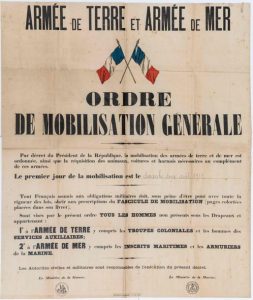 “ORDRE DE MOBILISATION GÉNÉRALE” du Dimanche 2 Août 1914 - Armée de Terre et Armée de Mer, (y compris les Troupes Coloniales) - avec drapeaux tricolores - Imprimerie Nationale.