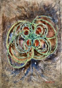 Piaubert, Jean (France 1900-2002).- Composition abstraite. Aquarelle originale, 29,5 x 21 cm (à bords perdus), signée en lettres majuscules à la gouache rouge en bas à dr. (qqs plis).