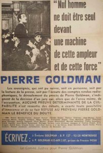 «LE COMITÉ JUSTICE pour Pierre GOLDMAN.» «Nul homme ne doit être seul devant une machine de cette ampleur et de cette force.» - (Pierre GOLDMAN, Juif Polonais, ancien militant Communiste, proche de l'ETA, a été condamné a 12 ans de réclusion pour 3 Hold-up, mais il fut acquitté, en 1976, par les Assises de la SOMME pour le Double meurtre du Boulevard RICHARD-LENOIR, malgré qu'il fut «le coupable idéal.») -