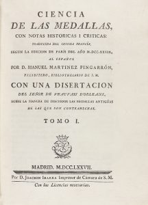 .1777.. LIBRO: .(NUMISMÁTICA-MEDALLAS).. .[JOBERT, LUOIS], MARTINEZ PINGARRÓN, MANUEL (Trad.):. .CIENCIA DE LAS MEDALLAS, CON NOTAS HISTORICAS I CRITICAS... CON UNA DISERTACION DEL SEÑOR DE VEAUVAIS D´ORLEANS, SOBRE LA MANERA DE DISCERNIR LAS...