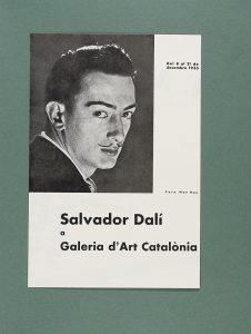 4 catálogos de las primeras exposiciones realizadas por Dalí en Barcelona, el Manifest Groc y una carta de Dalí. XLVIII láminas con ilustraciones fotográficas en blanco y negro, 3 lám. de ilustraciones en color montadas sobre cartulina verde y 3 hojas. Edición de 220 ejemplares, presentado en un estuche de tela.