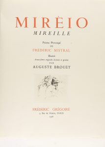 .1938.. LIBRO: .(BIBLIOFILIA-ARTE).. .MISTRAL, FRÉDÉRIC; BROUET, AUGUSTE:. .MIRÈIO. MIREILLE. Poème Provençal de... Illustré d´eaux-fortes originales dessinées et gravés par.... Paris: Frédéric Grégoire, 1938. 4º mayor. 202 p. + X + 2 h....