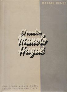 .1942.. LIBRO: .(ESCULTURA-BIBLIOFILIA).. .BENET, RAFAEL:. .EL ESCULTOR MANOLO HUGUÉ. Colección Miguel Angel.. S.l.: Ed. Argos, 1942. Folio. 182 p. + 1 h. 51 lám. de ilustr. fotográficas. Viñetas y capitales grabadas al boj por E. C. RICART....