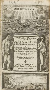 .1653.. LIBRO: .(CIENCIAS NATURALES).. .FRANZII, WOLFGANGI:. .ANIMALIUM HISTORIA SACRA in qua plerorumque abimalium praecipuae.... Amstelodami: Ioan. Ianssonium, 1653. 12º. 16 h. + 638 p. + 23 h. Bella portada calcográfica; capitales y...