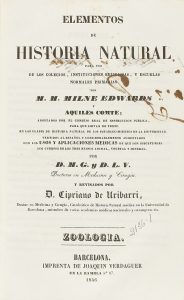 .1846.. LIBRO: .(CIENCIAS NATURALES).. .MILNE EDWARDS, M. M.; COMTE, AQUILES:. .ELEMENTOS DE HISTORIA NATURAL PARA USO DE LOS COLEGIOS, INSTITUCIONES RELIGIOSAS, Y ESCUELAS NORMALES PRIMARIAS POR.... Barcelona: Impr. de Joaquín Verdaguer, 1846. 3...