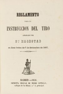 .1858.. LIBRO: .(DERECHO-ENCUADERNACIÓN).. .REGLAMENTO PARA LA INSTRUCCION DEL TIRO APROBADO POR SU MAGESTAD EN REAL ÓRDEN DE 7 DE SETIEMBRE DE 1857.. Madrid: Imp. Militar de Pedro Covillas, 1858. 8º menor. 4 h.+ 142 p. + 1 h. Ilustr. con estados...