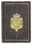 en el texto y una lám. plegada al final. Enc. en plena piel con hilos, cantos y cejas dorados, gran escudo dorado y hierros secos en ambos planos, nervios y lomera cuajada, cortes dorados.