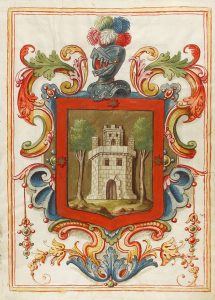 blason iluminado sobre vitela. Texto doblemente enmarcado. Con sellos de lacre, estampillado y firmados. El procurador, haciendo uso de su habitual retórica, defiende los nobles orígenes de la casa de Miravete, con una antigüedad de más de 400 años, relacionándola a una propiedad de la Villa de Albelda y al Castillo de Miravete. Enc. en plena piel con hierros en ambos planos, muy rozada. [Más:] REAL EXECUTORIA DE INFANZONIA GANADA POR DON JOSEPH MIRAVETE Y DOMENECH Y DON JUAN FRANCISCO RAMON MIRAVETTE Y BELLET padre e hijo vecinos de la Villa de Albelda. Manuscrito sobre papel de 18 h. manuscritas en recto y verso más una portada en vitela con el escudo de armas familiar, iluminado. Sello estampillado. Descripción de la genealogía familiar reciente. Enc. en plena piel rozada y guardas de vitela. Conserva el sello de lacre con su caja de plomo. Ambos vol. presentados en un estuche de piel de época, muy rozado y con faltas.