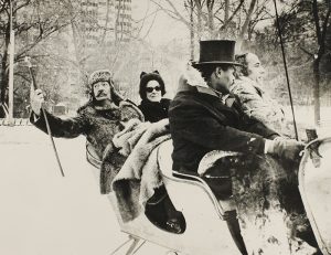 .1960 ca.. FOTOGRAFÍA: .DALÍ Y GALA EN TRINEO EN CENTRAL PARK.. 17 x 22 cm. Fotografía del artista paseando durante un viaje a New York.