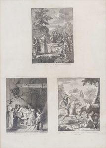 un trabajo inicial para su edición del Quijote a Hogarth, que realizó 6 estampas del principio de la novela. Cada grabado contiene una leyenda en inglés con la descripción de la escena, el nombre del artista, el volumen y página correspondiente a la edición de Tonson de 1756. Algún punto de óxido, pero en general muy limpio.